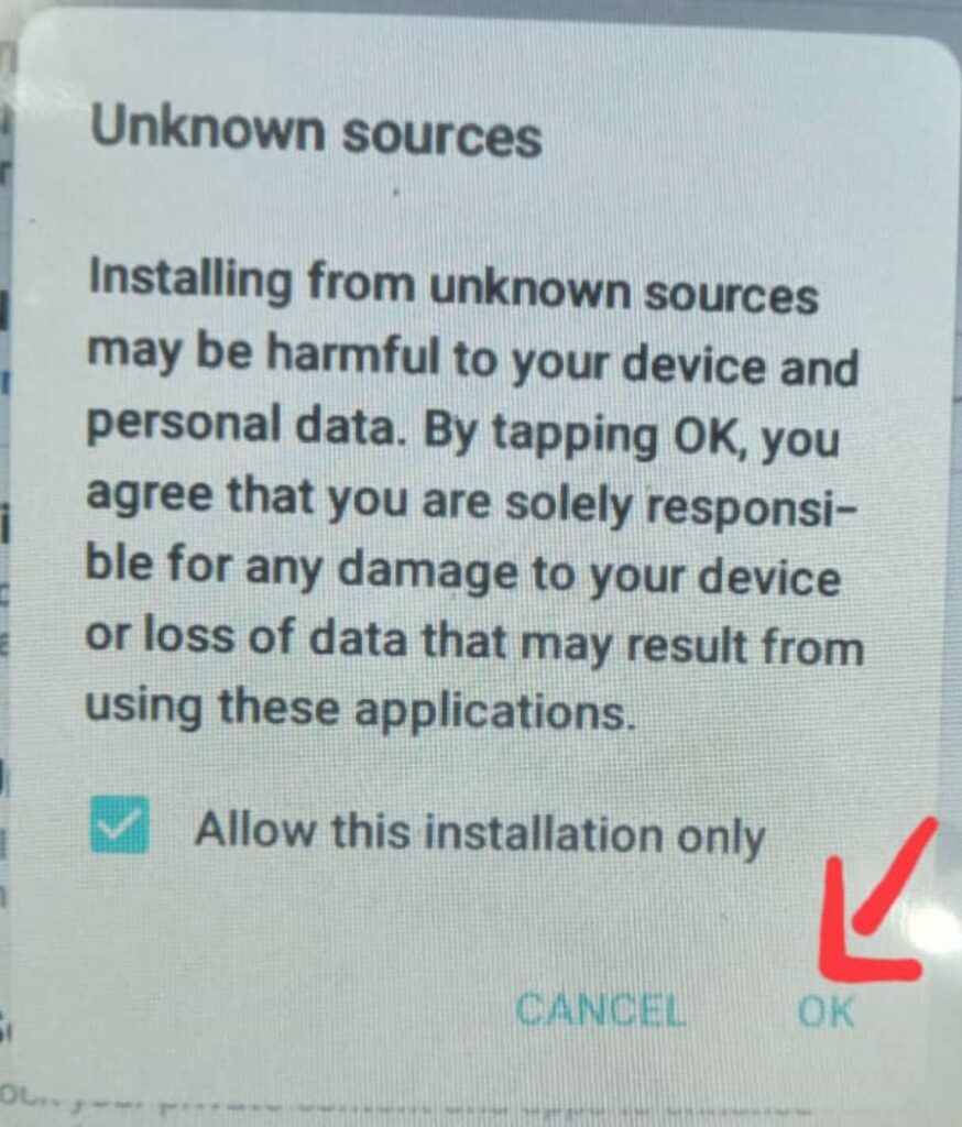 Kwa wanaotumia Simu za Android za Zamani, Baada ya ku download Bonyeza kwenye mshale mwekundu kama inavyoonekana kwenye hatua zifuatazo